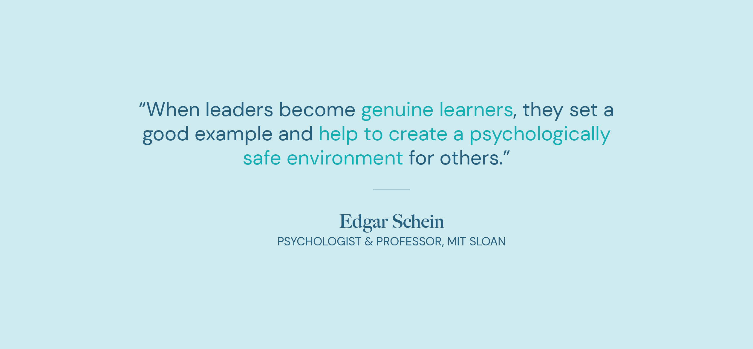 - “When leaders become genuine learners, they set a good example and help to create a psychologically safe environment for others.” – Edgar Schein, Psychologist and Professor at MIT Sloan School of Management.